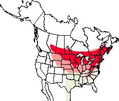 The Black-billed Cuckoo breeds east of the Continental Divide, from central Alberta and eastern Montana across southern Canada and the Midwest to the Maritime Provinces, south to Virginia, western North Carolina, Missouri, and Kansas. A long-distance migrant, it winters in South America. There are very few records west of the Rockies. Normally a magnet for “eastern” vagrants, California has seen Black-billed Cuckoos only 16 times, and Oregon has no records. Washington’s four records all occurred in a narrow window between 19 June and 1 July. Three were near the eastern edge of the state (Whitman and Pend Oreille counties) and the fourth was in Bremerton (Whatcom County). The most recent was in 1988. British Columbia has about 20 records from the interior of the province between late May and mid-August. Idaho has about a dozen records, and there is some evidence that breeding may have occurred a few times in the southern part of the state.
