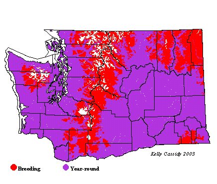 Red-tailed Hawks can be found year round throughout most of Washington, including in developed areas such as the city of Seattle. One species, the Harlan's Red-tailed Hawk, winters regularly in small numbers near Bellingham (Whatcom County) and is found regularly in Skagit and Snohomish Counties, but rarely in other areas either side of the Cascades.